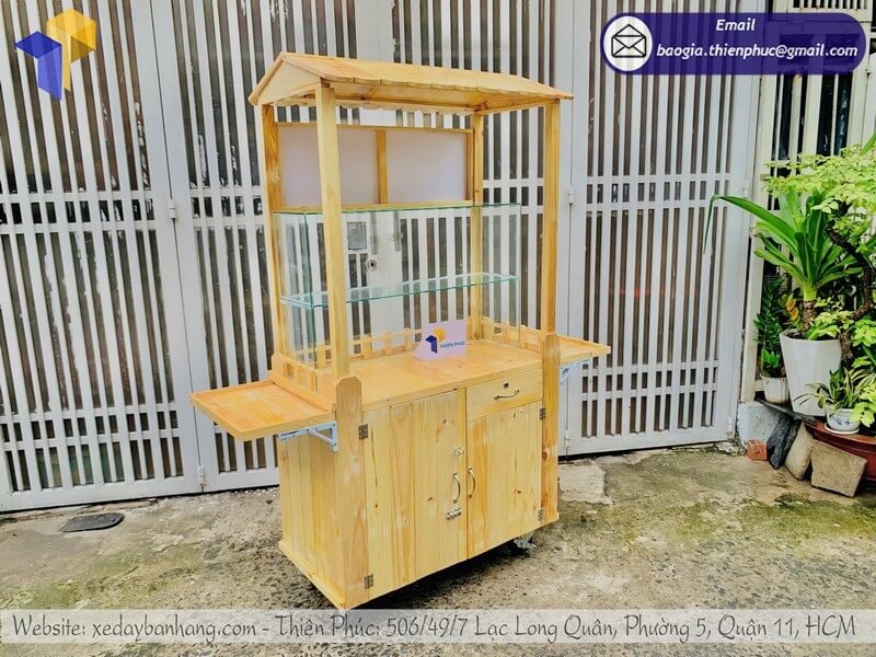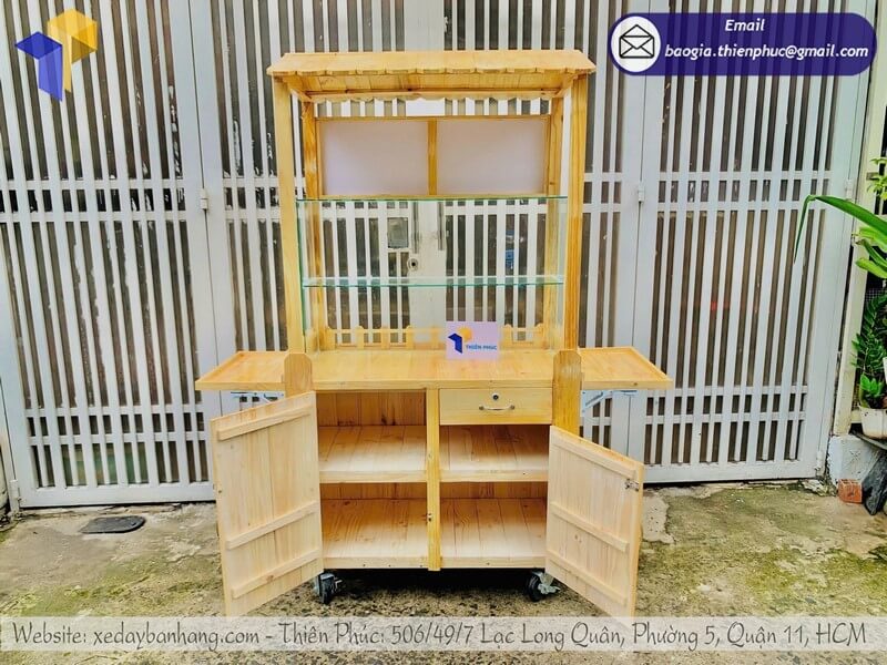 Gia công quầy gỗ đẩy bán nước ép trái cây lưu động rẻ - Thiên Phúc chuyên xưởng sản xuất và gia công nhiều mẫu quầy gỗ bán hàng lưu động với giá chỉ từ 2.800.000đ/quầy trở lên, không có báo giá cố định. Vui lòng liên hệ đến chúng tôi để được báo giá nhanh chóng và chi tiết nhất.