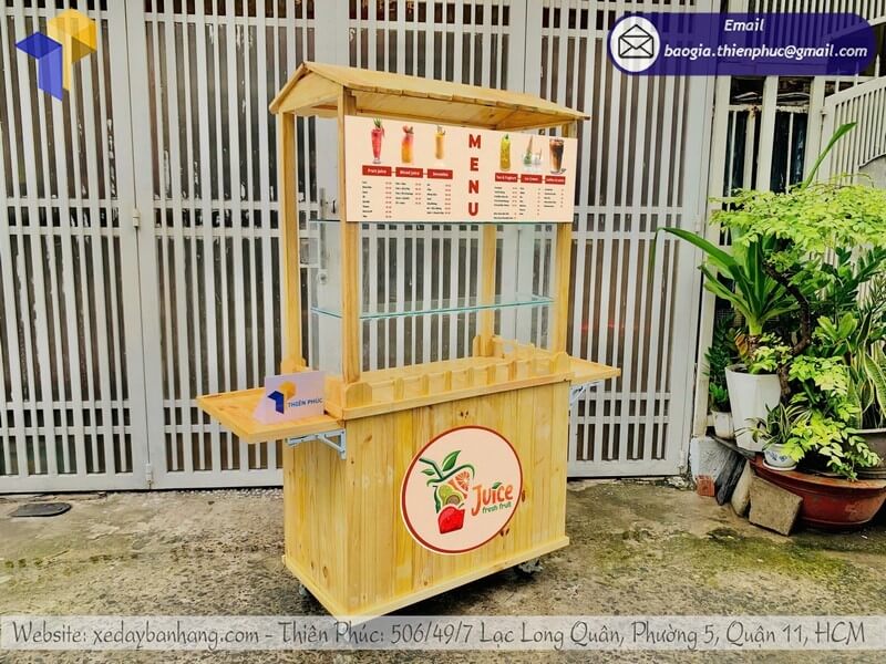 Gia công quầy gỗ đẩy bán nước ép trái cây lưu động rẻ, Nhận làm theo mẫu