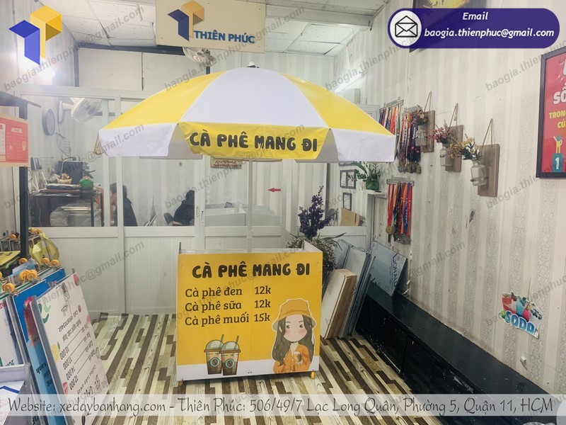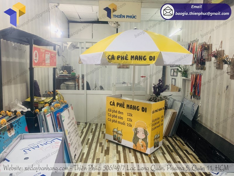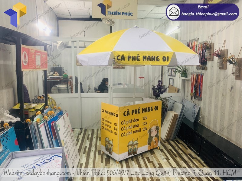 Công ty THIÊN PHÚC chúng tôi là một trong những thương hiệu sản xuất, cung cấp xe đẩy bán nước take away hàng đầu được rất nhiều người lựa chọn tìm mua sản phẩm. Chúng tôi có những xưởng trực tiếp sản xuất, phân phối sản phẩm tới tận tay người tiêu dùng không qua môi giới trung gian nên kiểm soát chất lượng sản phẩm tốt, báo giá sản phẩm ưu đãi cạnh tranh nhất thị trường