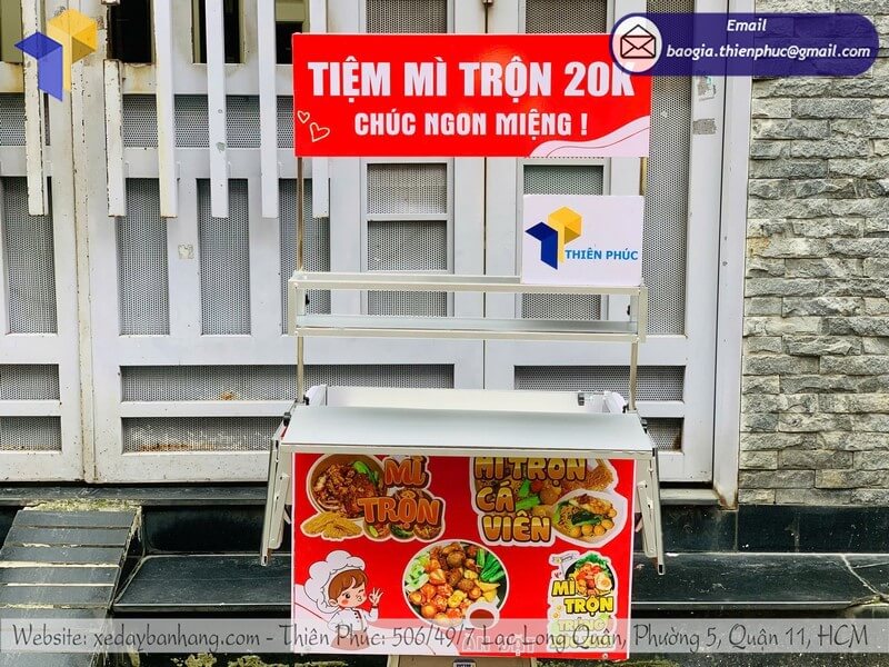 Tên sản phẩm: Gia công thùng bán mì trộn lưu động gắn xe máy rẻ với logo nhãn TIỆM MÌ TRỘN 20K