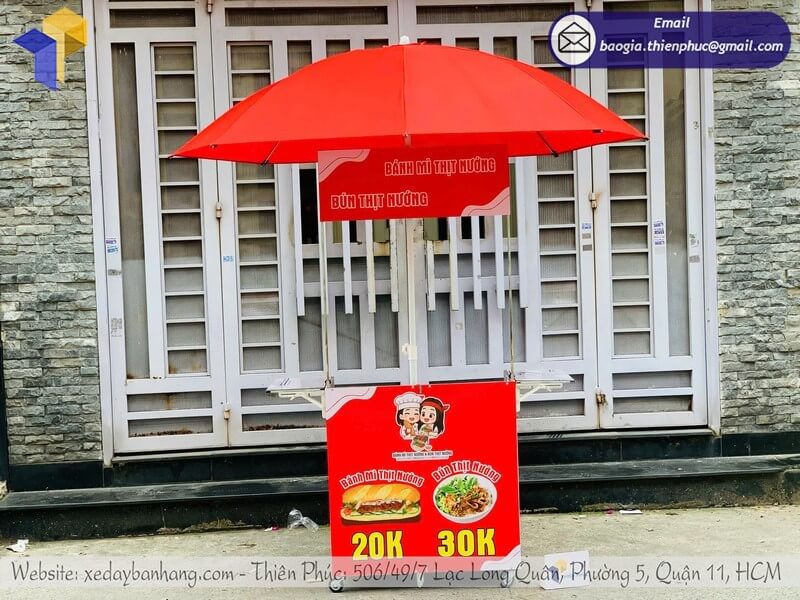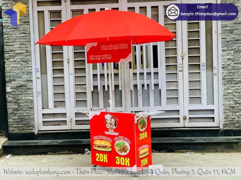 Tên sản phẩm: Gia công tủ bán bánh mì xếp gọn có dù che ngoài trời với logo BÁNH MÌ - BÚN THỊT NƯỚNG