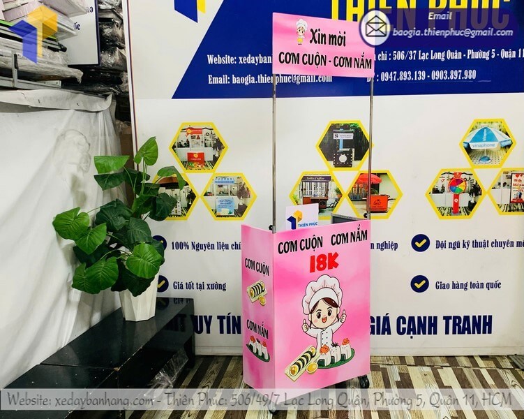Xưởng sản xuất Thiên Phúc chuyên gia công tủ bán cơm nắm dạo gấp gọn ngoài trời rẻ, mang đến giải pháp tối ưu cho những người kinh doanh nhỏ lẻ, đảm bảo chất lượng, bền bỉ, và hỗ trợ phát triển thương hiệu cá nhân.