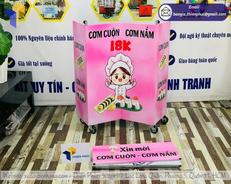 Tên sản phẩm: Gia công tủ bán cơm nắm dạo gấp gọn ngoài trời rẻ với nhãn hiệu CƠM CUỘN - CƠM NẮM 18K