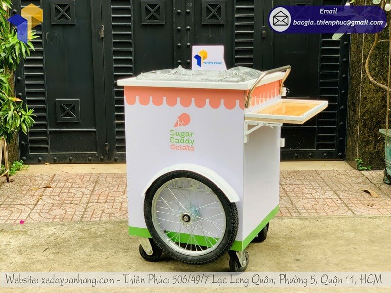 Tên Sản Phẩm: Gia công xe đẩy bán kem lưu động ngoài trời giá rẻ với nhãn hiệu Sugar Daddy Gelato