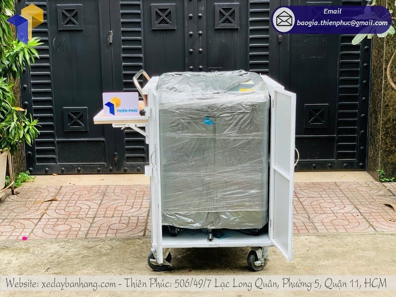 Xe đẩy tại Thiên Phúc được gia công chuẩn, sử dụng chất liệu thép chắc chắn, sơn tĩnh điện chống gỉ, kèm bánh xe di chuyển linh hoạt, đảm bảo bền bỉ theo thời gian và chịu được điều kiện ngoài trời.