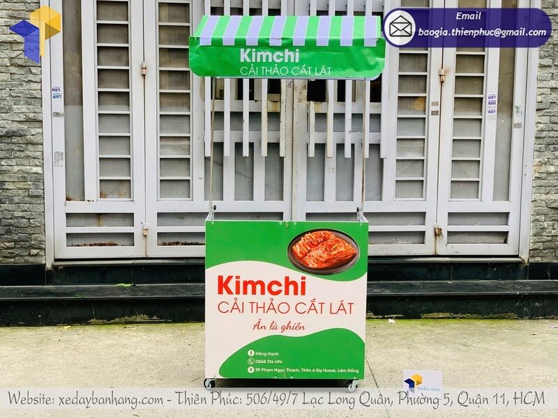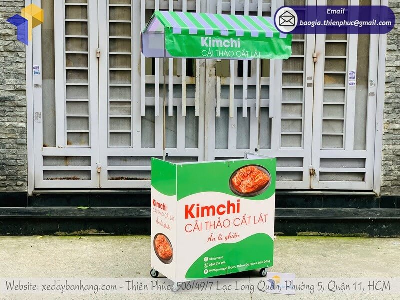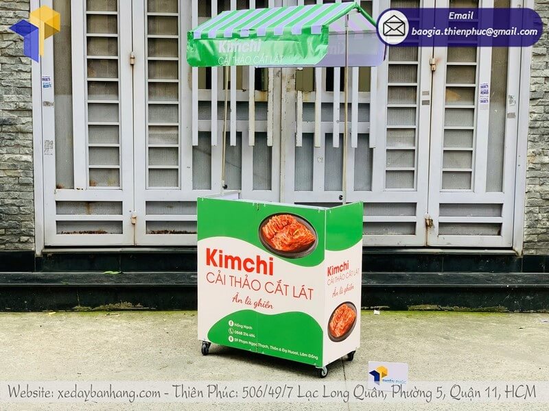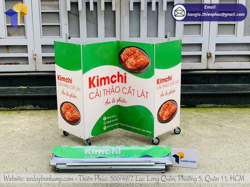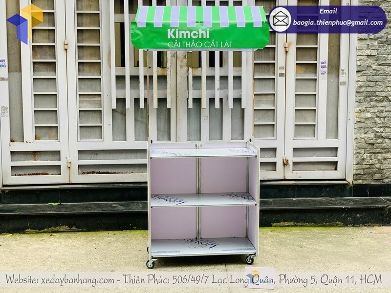 Tên sản phẩm: Giá mẫu quầy bán đồ ăn dạo có mái che xếp gọn logo KIM CHI CẢI THẢO CẮT LÁT