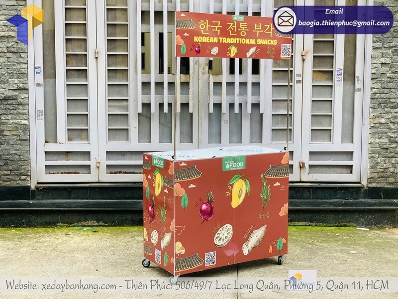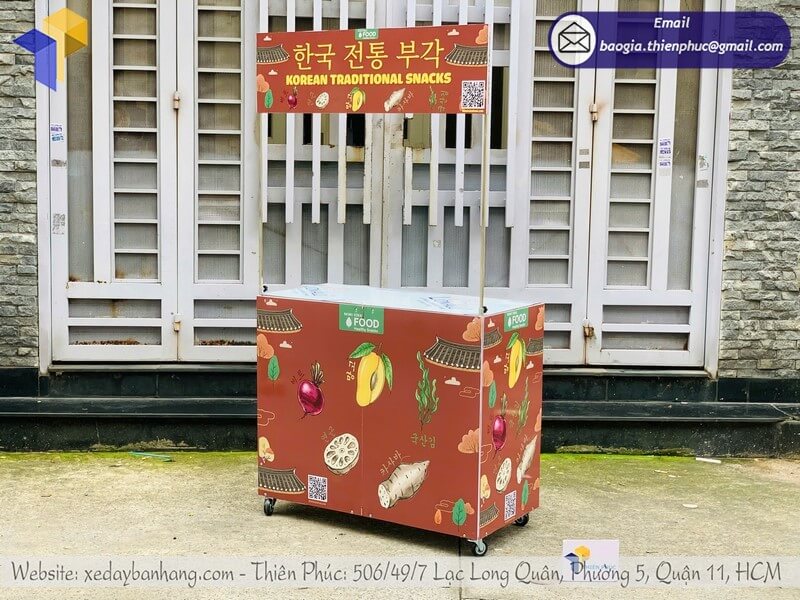 Giá mẫu quầy bán đồ ăn dạo xếp gọn trên vỉa hè - Thiên Phúc cung cấp nhiều mẫu quầy xe với giá gốc tận xưởng, thiết kế miễn phí logo theo cầu, sản xuất và giao nhanh ngay trong ngày tại TPHCM