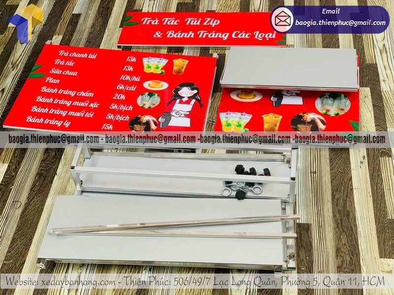 Tên sản phẩm: Giá mẫu thùng bán trà tắc dạo gấp gọn lắp xe máy TRÀ TẮC TÚI ZIP & BÁNH TRÁNG CÁC LOẠI