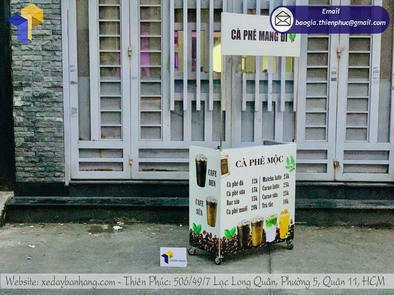 Khách hàng có thể đến trực tiếp xưởng hoặc văn phòng Thiên Phúc để tham khảo mẫu, kiểm tra chất lượng và đặt mua giá tủ bán cafe mang đi di động gấp gọn ngoài trời. Đây là cơ hội để trải nghiệm sản phẩm thực tế, nhận tư vấn chi tiết từ đội ngũ chuyên nghiệp và lựa chọn mẫu tủ phù hợp nhất với nhu cầu kinh doanh của mình. Mua trực tiếp không chỉ nhanh chóng mà còn đảm bảo quyền lợi về giá cả và hỗ trợ xuất hóa đơn VAT.