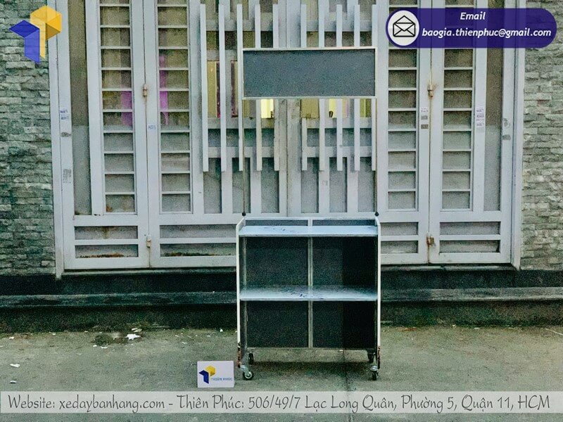 Giá dao động chỉ từ 700.000 VNĐ cho mẫu cơ bản, đến 2.200.000 VNĐ cho mẫu cao cấp có dù che và kệ đa năng. Mức giá rất hợp lý cho kinh doanh lưu động.