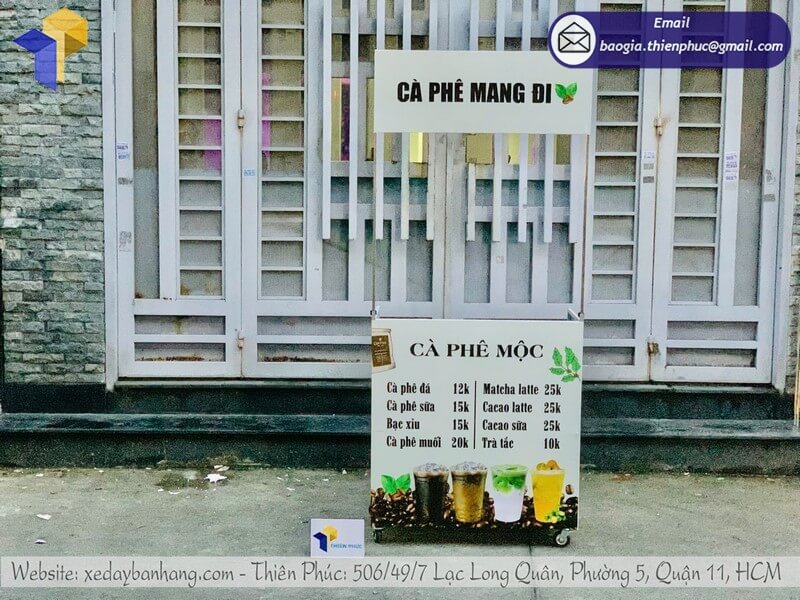Giá tủ bán cafe mang đi di động gấp gọn ngoài trời là giải pháp hoàn hảo cho kinh doanh cà phê lưu động. Với thiết kế gọn nhẹ, di chuyển dễ dàng, chất liệu bền bỉ, hỗ trợ xuất hóa đơn VAT, sản phẩm đáp ứng đầy đủ nhu cầu của chủ quán từ nhỏ lẻ đến chuyên nghiệp. Đầu tư một chiếc tủ di động là bước đi thông minh để mở rộng kinh doanh cà phê ngoài trời hiệu quả và tiết kiệm chi phí.