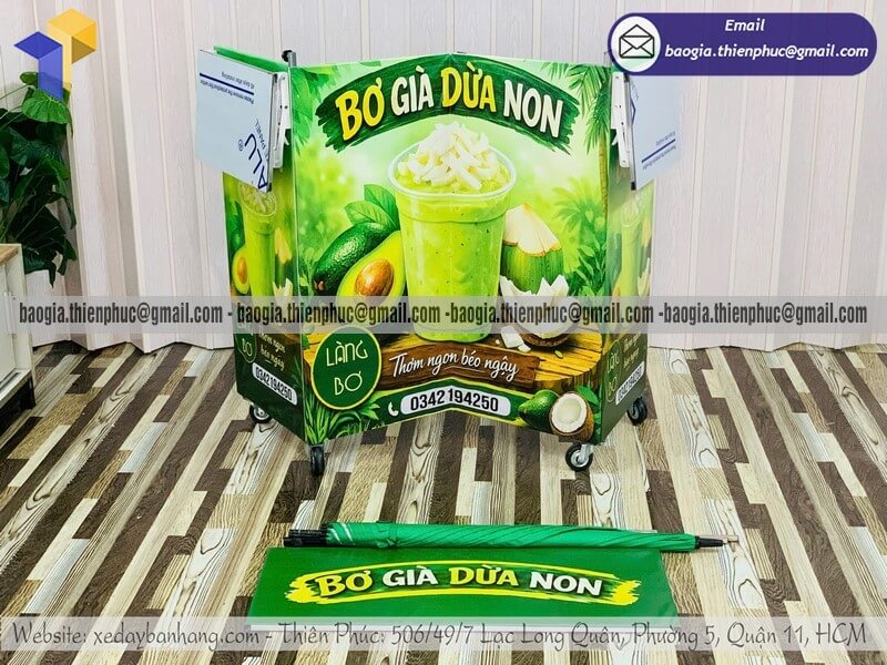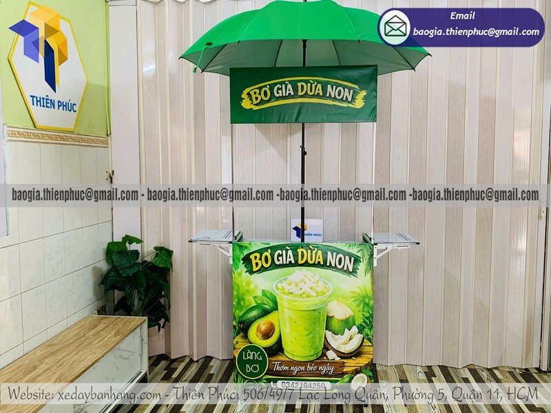 Tên sản phẩm: Giá tủ bán nước nhỏ xếp gọn di động có dù che giá rẻ với sản phẩm BƠ GIÀ DỪA NON
