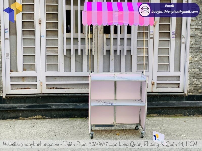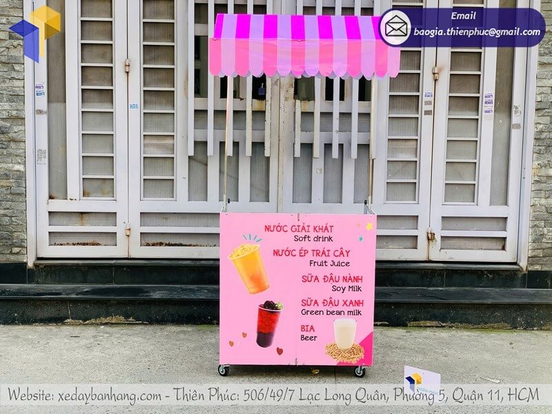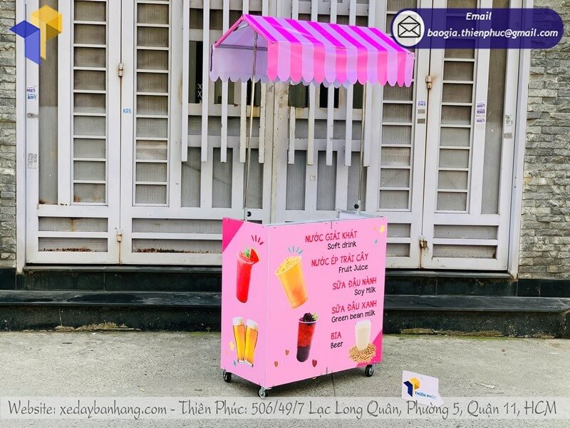 Giá xe đẩy bán nước giải khát gấp gọn lưu động ngoài trời - Thiên Phúc là xưởng sản xuất và gia công với hơn 10 năm kinh nghiệm, cung cấp nhiều mẫu xe đẩy bán hàng gấp gọn lưu động, chỉ cần 700.000đ/xe trở lên với chất lượng ốp bạt,... chưa kèm theo chi phí khác như menu, đèn led, ô dù, kệ xếp,... Hỗ trợ xuất hóa đơn VAT. Đặt hàng từ 10 kệ trở trở lên giảm mỗi kệ 50.000đ. Giao hàng nhanh trên toàn quốc. Thiết kế logo hoàn toàn miễn phí