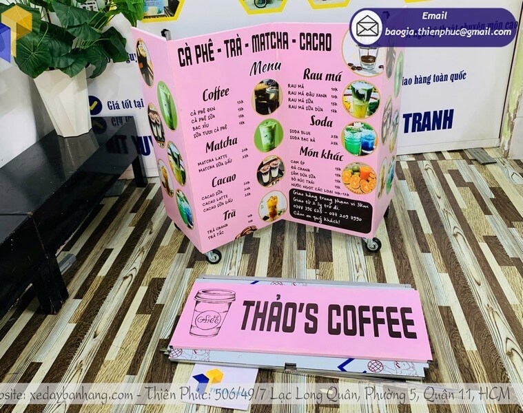 Chúng tôi chuyên nhận thiết kế – gia công – in ấn các mẫu xe đẩy đồ uống gấp gọn theo yêu cầu riêng: