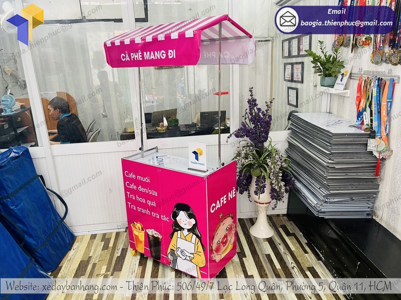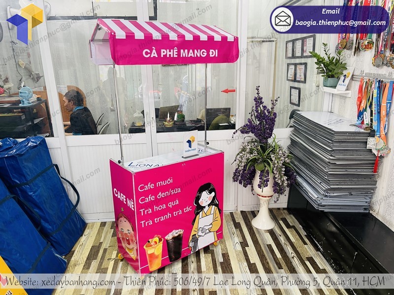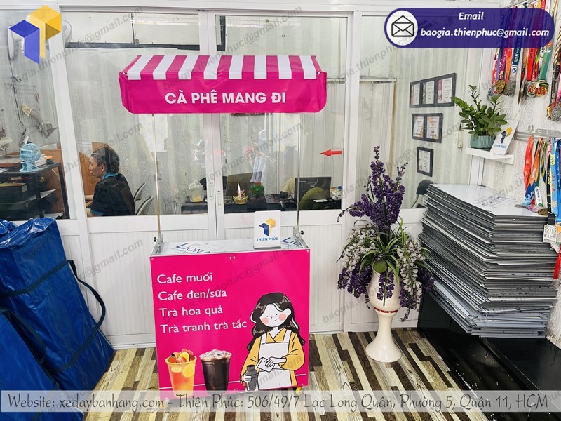 Công ty Thiên Phúc chúng tôi sẽ là địa chỉ uy tín hàng dầu cho khách hàng lựa chọn các dòng xe lắp ráp bán hàng lưu động, xe đẩy bán hàng rong, booth bán hàng, kiot, xe đạp bán hàng rong,... Với hơn 10 năm hoạt động, các mẫu xe đẩy bán hàng lưu động đẹp tại xưởng của chúng tôi luôn được người dùng ưu tiên lựa chọn số 1. Trong đó mẫu xe cafe take away lắp ráp cũng đang là 1 trong số những mặt hàng bán chạy nhất của chúng tôi.