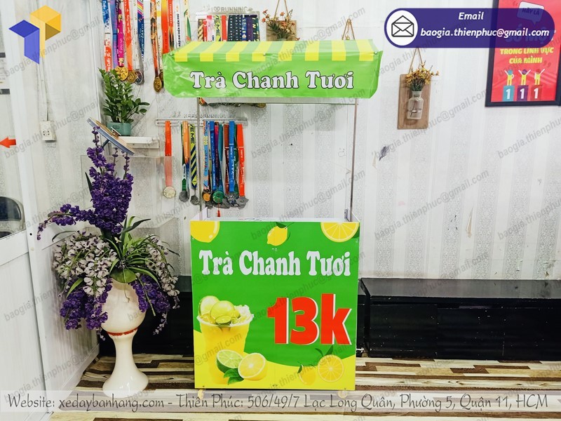 Nếu bạn chưa biết mua xe lắp ráp bán trà chanh ở đâu thì bạn có thể đến vớiThiên Phúc. Tại đây có rất nhiều mẫu xe kinh doanh vỉa hè được gia công từ chất liệu inox 304 rất bền bỉ, chắc chắn và tất cả sản phẩm đều được đảm bảo 100% chính hãng.