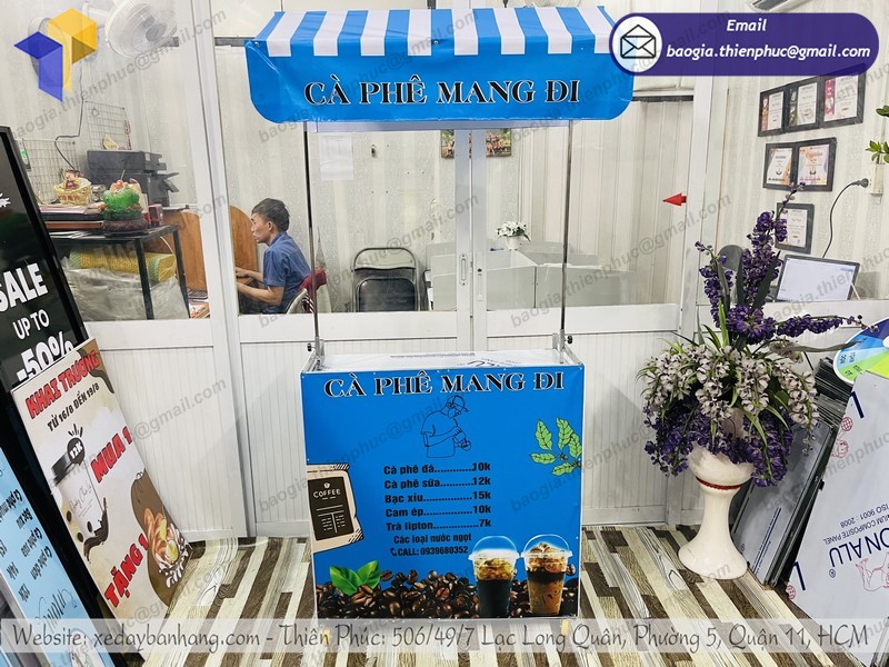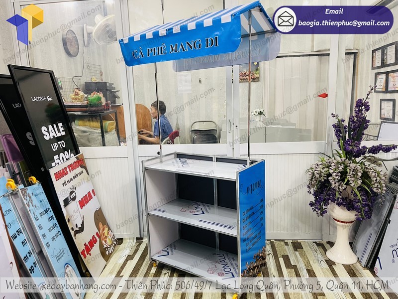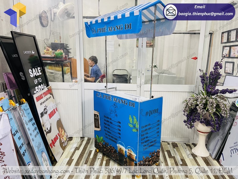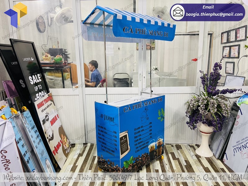 Thiên Phúc là nơi cung cấp các giải pháp thiết kế và thi công quảng cáo. Đồng thời, cũng là thương hiệu xe đẩy bán hàng được nhiều người tin dùng và sử dụng. Ngoài ra, con nhận gia công theo nhu cầu và mong muốn của khách hàng. Chúng tôi luôn đặt tiêu chí “sự hài lòng của quý khách là niềm tự hào của chúng tôi”. Tại Thiên Phúc có vô vàn mẫu mã đa dạng, giá cả phù hợp; chất lượng và uy tín trải dài khắp 63 tỉnh thành với hệ thống vận chuyển xuyên suốt 3 miền với thời gian nhanh nhất.