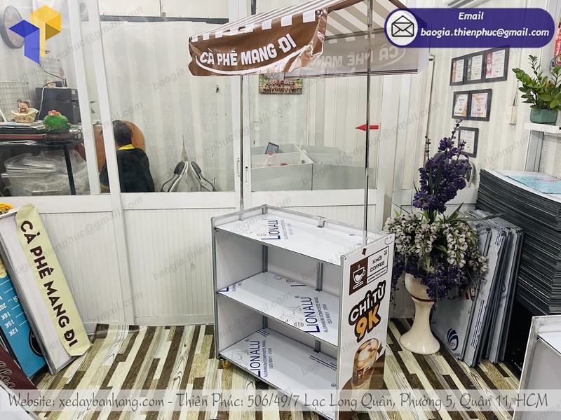 Thiên Phúc là nơi cung cấp các giải pháp thiết kế và thi công quảng cáo. Đồng thời, cũng là thương hiệu xe đẩy bán hàng được nhiều người tin dùng và sử dụng. Ngoài ra, con nhận gia công theo nhu cầu và mong muốn của khách hàng. Chúng tôi luôn đặt tiêu chí “sự hài lòng của quý khách là niềm tự hào của chúng tôi”. Tại Thiên Phúc có vô vàn mẫu mã đa dạng, giá cả phù hợp; chất lượng và uy tín trải dài khắp 64 tỉnh thành với hệ thống vận chuyển xuyên suốt 3 miền với thời gian nhanh nhất.