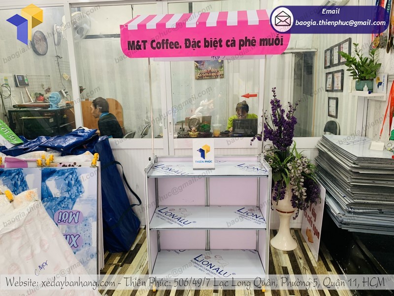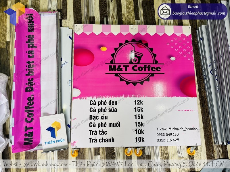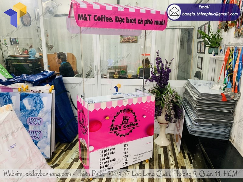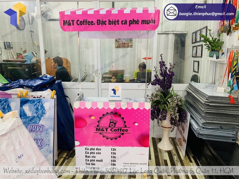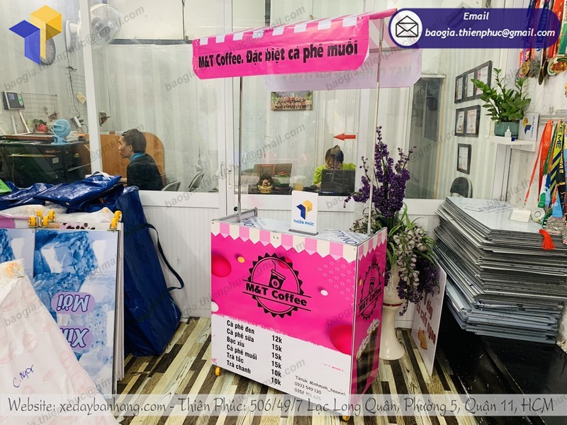 Thiên Phúc là nơi cung cấp các giải pháp thiết kế và thi công quảng cáo. Đồng thời, cũng là thương hiệu xe đẩy bán hàng được nhiều người tin dùng và sử dụng. Ngoài ra, con nhận gia công theo nhu cầu và mong muốn của khách hàng. Chúng tôi luôn đặt tiêu chí “sự hài lòng của quý khách là niềm tự hào của chúng tôi”. Tại Thiên Phúc có vô vàn mẫu mã đa dạng, giá cả phù hợp; chất lượng và uy tín trải dài khắp 64 tỉnh thành với hệ thống vận chuyển xuyên suốt 3 miền với thời gian nhanh nhất.
