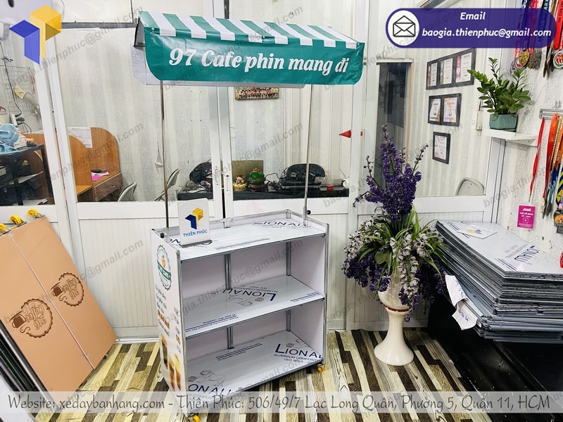 Quầy gấp gọn bán hàng được sử dụng trong các chiến dịch marketing tại điểm bán. Mục đích của các quầy bán hàng này để bán hàng giới thiệu sản phẩm, quảng bá thương hiệu. Để lựa chọn xe bán cà phê lưu động thích hợp, bạn cần dựa vào không gian, nhu cầu, mục đích của doanh nghiệp. Giá cả cũng sẽ dao động dựa vào thiết kế và chất liệu.