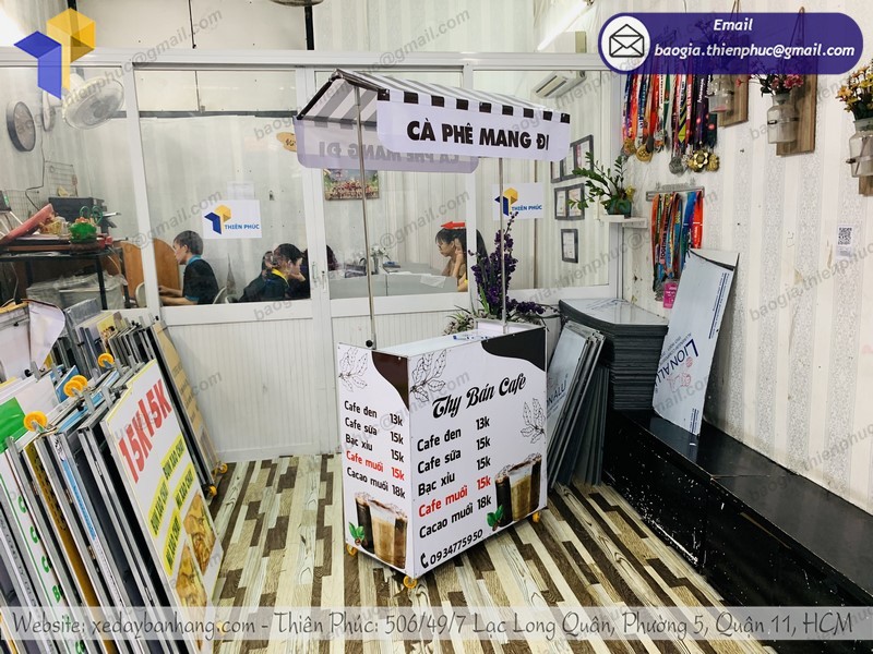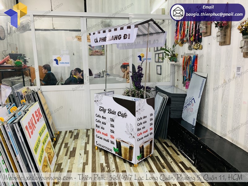 Quý khách hàng đang có nhu cầu sử dụng, mua xe cà phê lắp ráp mới, chất lượng để kinh doanh buôn bán, phục vụ cho hoạt động kinh doanh của mình? Thiên Phúc chuyên nhận đóng theo yêu cầu cho quý khách, nhận cung cấp số lượng lớn xe bán café xếp m theo mẫu mã quý khách đã thiết kế và có sẵn.