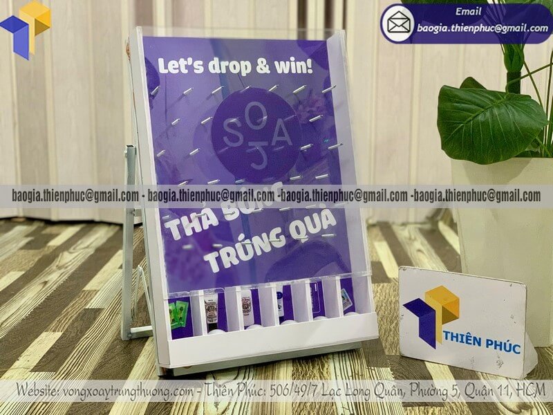 Hộp chơi thả banh zigzag cỡ nhỏ để bàn trúng thưởng - Xưởng sản xuất và Công Ty Thiên Phúc là xưởng chuyên nhận đặt làm theo yêu cầu, gia công, sản xuất và thiết kế nhiều mẫu hộp trò chơi zigzag nhỏ với giá rẻ nhất chỉ từ 750.000đ - trên 1.000.000đ/cái (giá mẫu mini để bàn) tùy theo mẫu mã kích thước nhận làm theo yêu cầu. Hỗ trợ xuất hóa đơn VAT cho doanh nghiệp, công ty. Tặng kèm thêm 6 trái banh đủ màu sắc khi khách đặt hàng. Liên hệ ngay với chúng tôi để được báo giá chi tiết nhất và đặt hàng nhanh chóng nhận nhiều ưu đãi. Hiện tại có sẵn nhiều mẫu tại xưởng