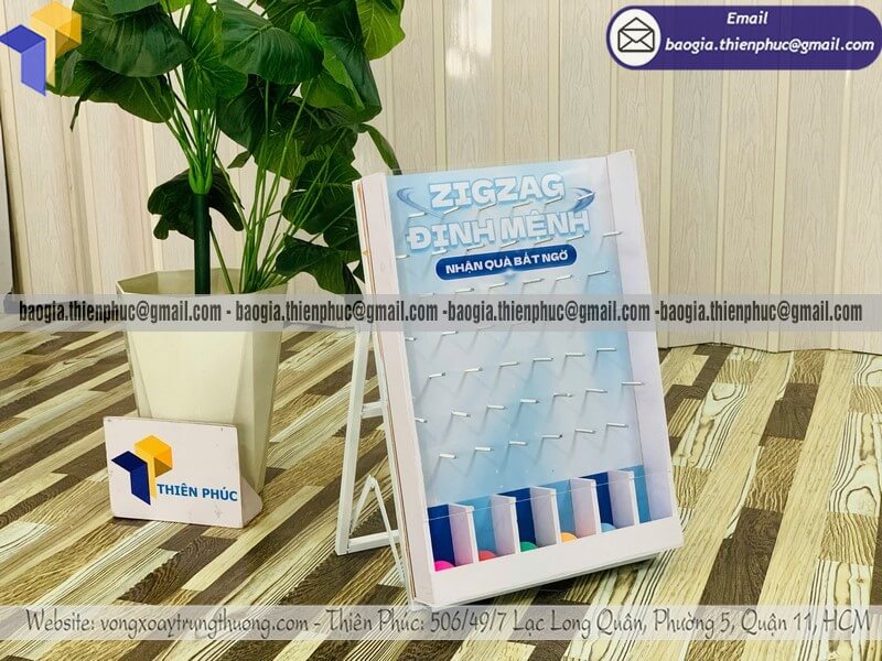 Nếu bạn đang cần một giải pháp minigame đơn giản – chi phí thấp – hiệu quả cao, hãy lựa chọn Hộp trò chơi thả bóng zigzag để bàn rơi trúng ô quà được sản xuất trực tiếp tại xưởng Thiên Phúc.