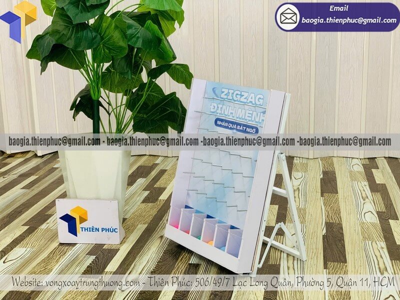 Tên sản phẩm: Hộp trò chơi thả bóng zigzag để bàn rơi trúng ô quà với logo ZIGZAG ĐỊNH MỆNH