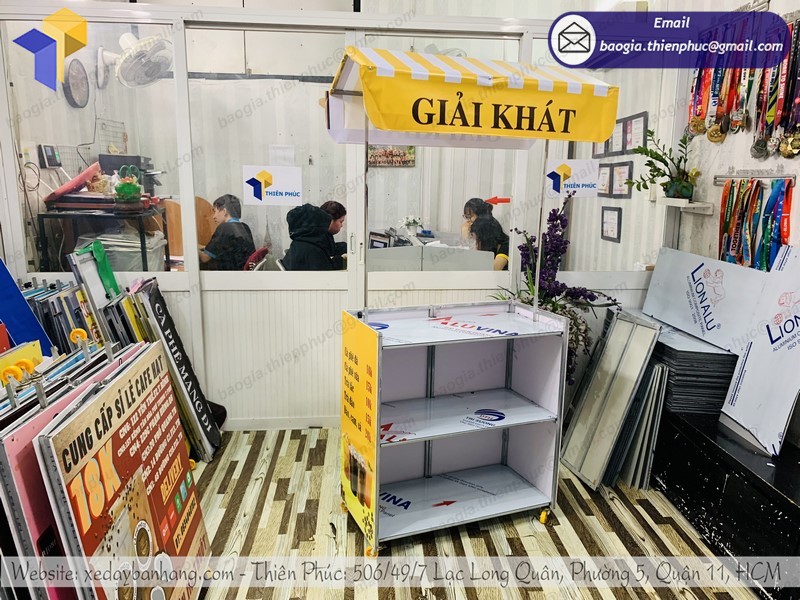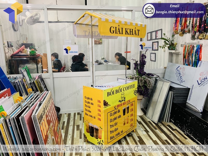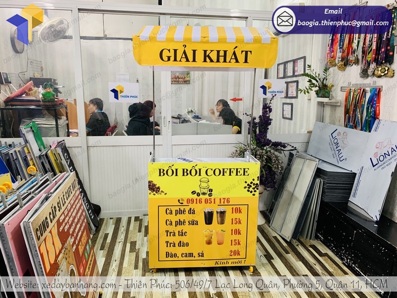 Trong nhiều đơn vị nhận làm xe bán café hiện nay, thì Công ty Thiên Phúc là địa chỉ chuyên làm xe bán cà phê di động uy tín và chuyên nghiệp nhất. Công ty chuyên cung cấp đầy đủ các sản phẩm, dịch vụ tư vấn thiết kế và thi công làm quầy cà phê lắp ráp với các loại vật liệu khác nhau cùng với dịch vụ in ấn trên mọi chất liệu.