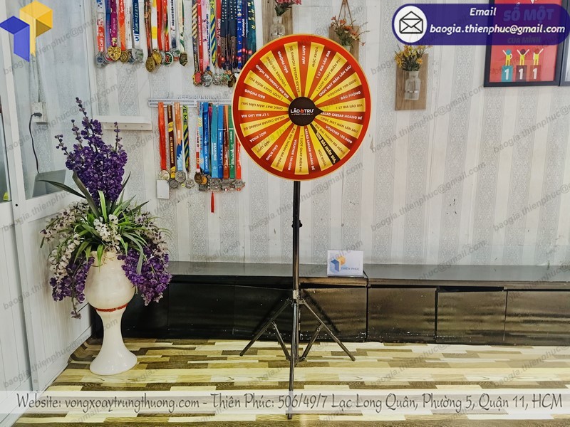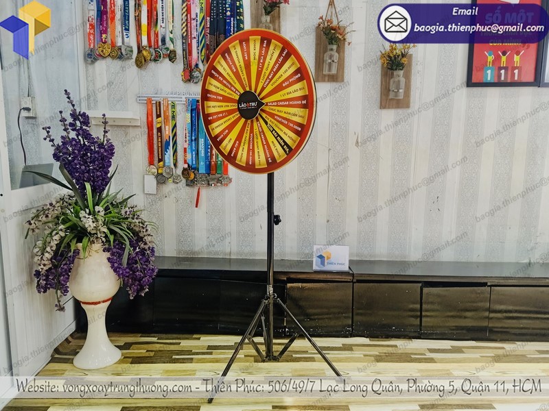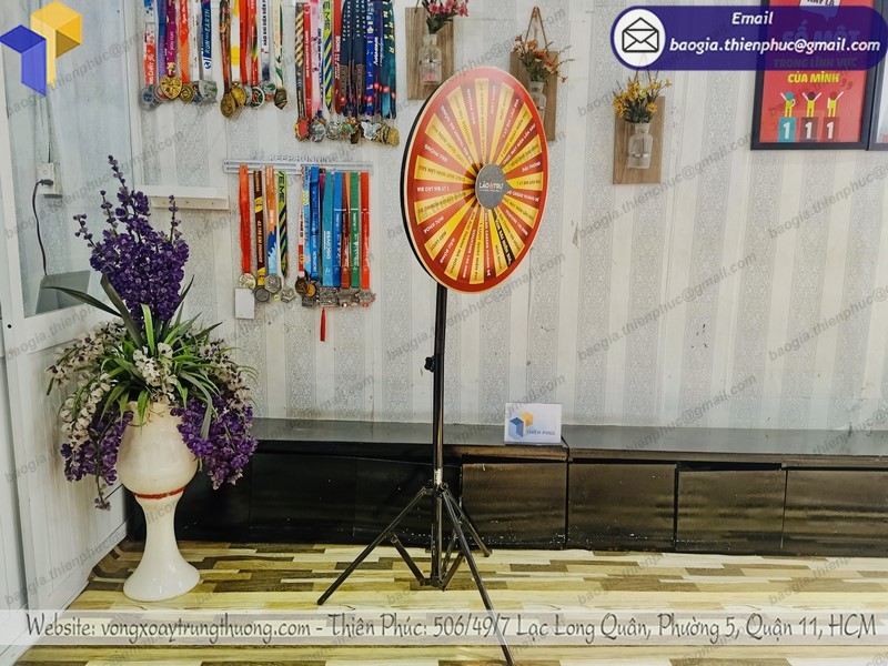 - vòng quay trúng thưởng chân xếp giúp quảng bá thương hiệu một cách hiệu quả. Nó thường được khai thác triệt để và sử dụng tại các sự kiện, triển lãm, hội nghị, chương trình giới thiệu sản phẩm, dịch vụ,…