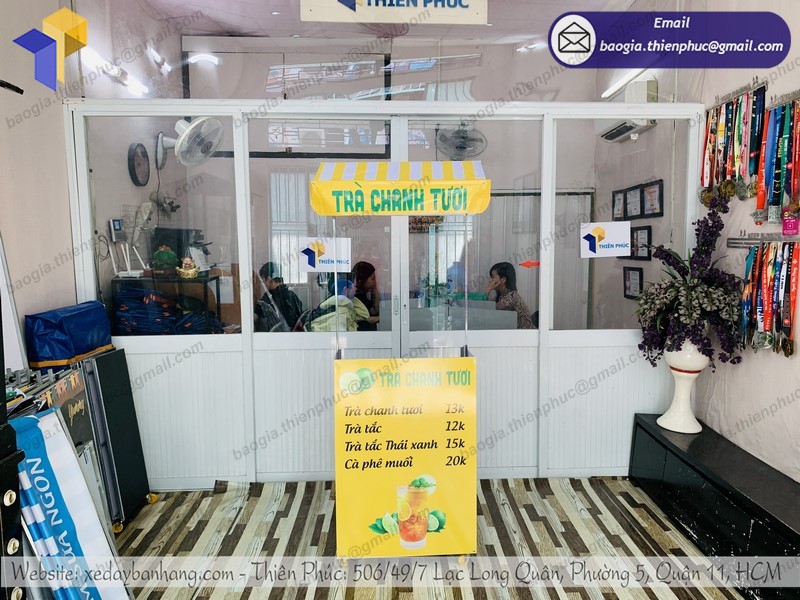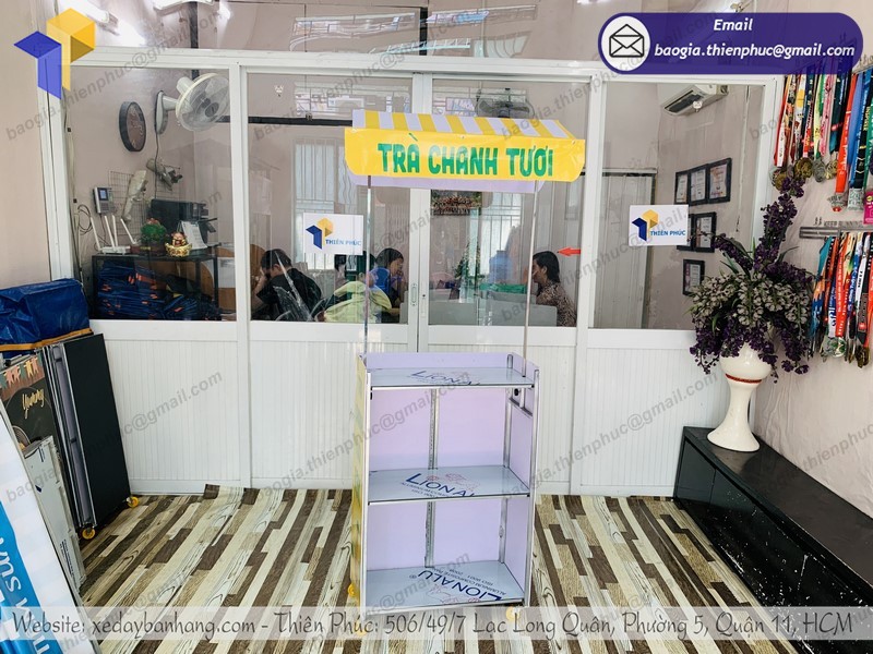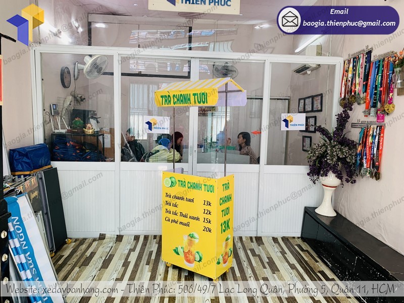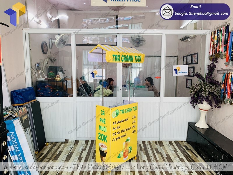 Thiên Phúc là nơi cung cấp các giải pháp thiết kế và thi công quảng cáo. Đồng thời, cũng là thương hiệu xe đẩy bán hàng được nhiều người tin dùng và sử dụng. Ngoài ra, con nhận gia công theo nhu cầu và mong muốn của khách hàng. Chúng tôi luôn đặt tiêu chí “sự hài lòng của quý khách là niềm tự hào của chúng tôi”. Tại Thiên Phúc có vô vàn mẫu mã đa dạng, giá cả phù hợp; chất lượng và uy tín trải dài khắp 64 tỉnh thành với hệ thống vận chuyển xuyên suốt 3 miền với thời gian nhanh nhất.