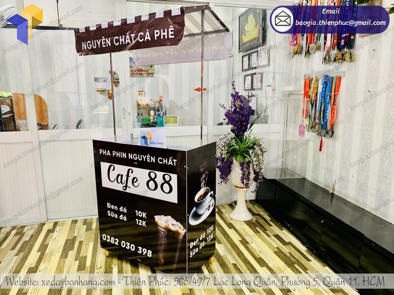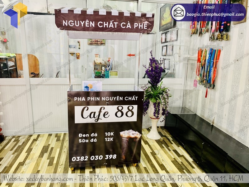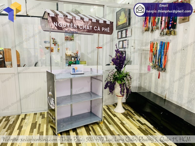 Tại Thiên Phúc có đa dạng các mẫu quầy bán café mang đi khác nhau với đầy đủ kích thước. Ngoài các mẫu sản phẩm phổ thông có sẵn như thị trường, Thiên Phúc còn NHẬN ĐẶT LÀM xe đẩy bán hàng theo yêu cầu – HỖ TRỢ thiết kế trang trí xe đẹp