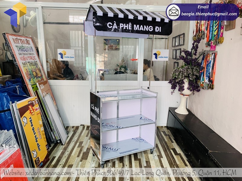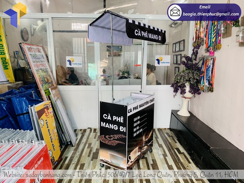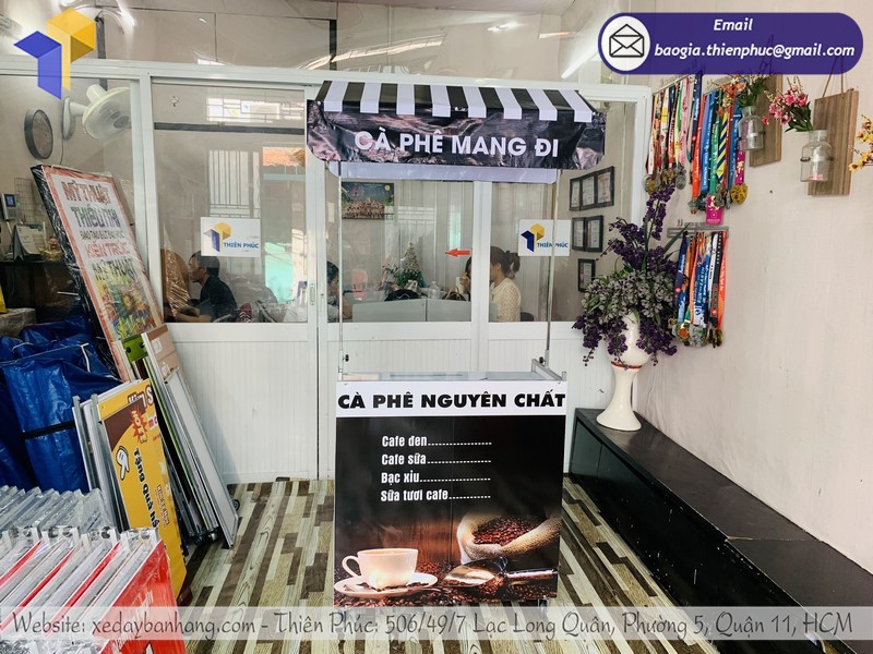 Thiên Phúc là một trong những địa chỉ chuyên sản xuất và phân phối xe bán cà phê tiện lợi, uy tín nhất định bạn không thể bỏ qua. Với hơn 10 năm kinh nghiệm trong lĩnh vực gia công xe đẩy bán hàng. Ở tất cả các lĩnh vực như xe bán trà sữa; xe bán sinh tố; xe bán trái cây; hoặc thậm chí các sản phẩm, cửa hàng thực phẩm, thức ăn và thức uống. Kể cả là các xe bán cà phê mang đi hay xe bán cà phê xếp gọn giá rẻ. Các sản phẩm gia công phân phối tại Thiên Phúc luôn được người tiêu dùng đánh giá cao: