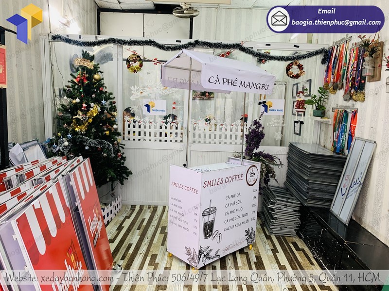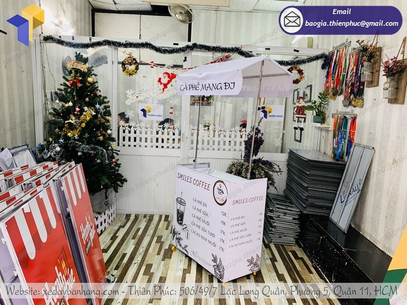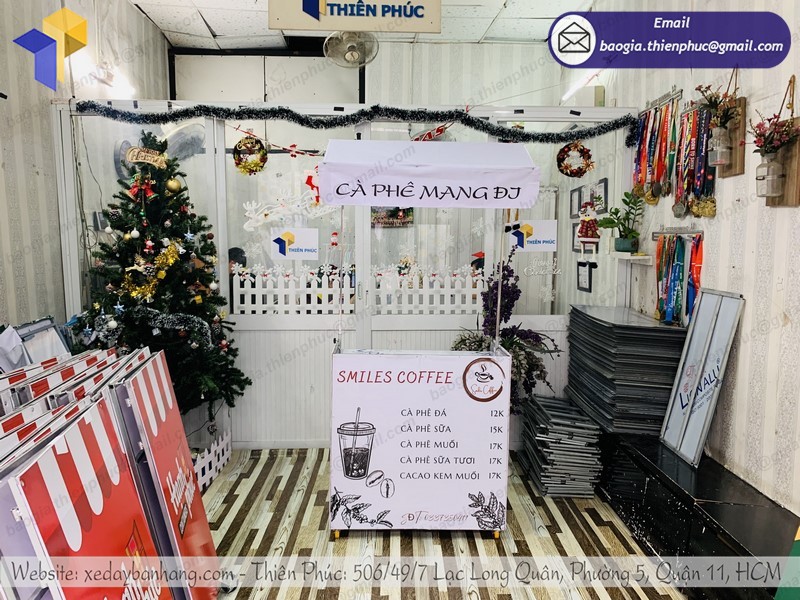 Một trong những địa chỉ bạn có thể hoàn toàn yên tâm khi mua sắm xe bán café xếp m đó chính là Thiên Phúc. Tại đây cung cấp xe bán cafe, trà sữa,.. di động bằng chất liệu inox 304 cao cấp với đề can nổi bật, đẹp mắt để thu hút khách hàng ghé quầy.