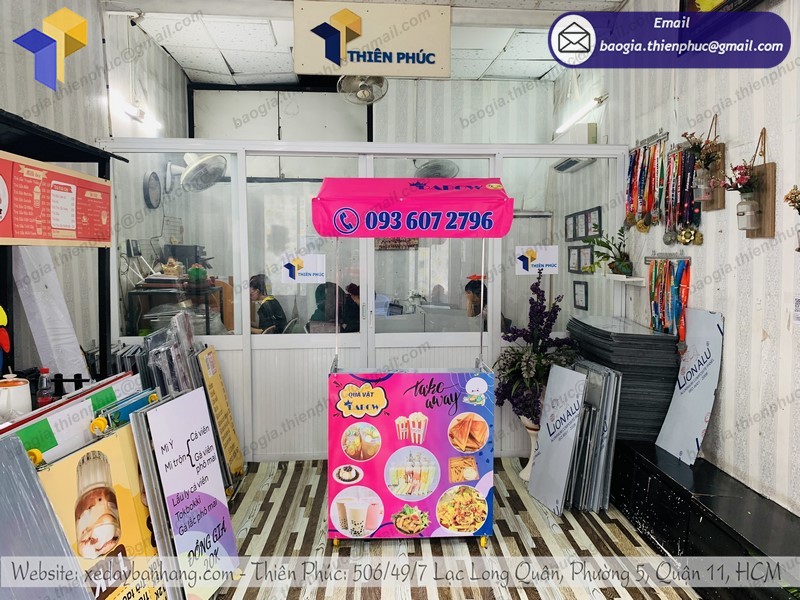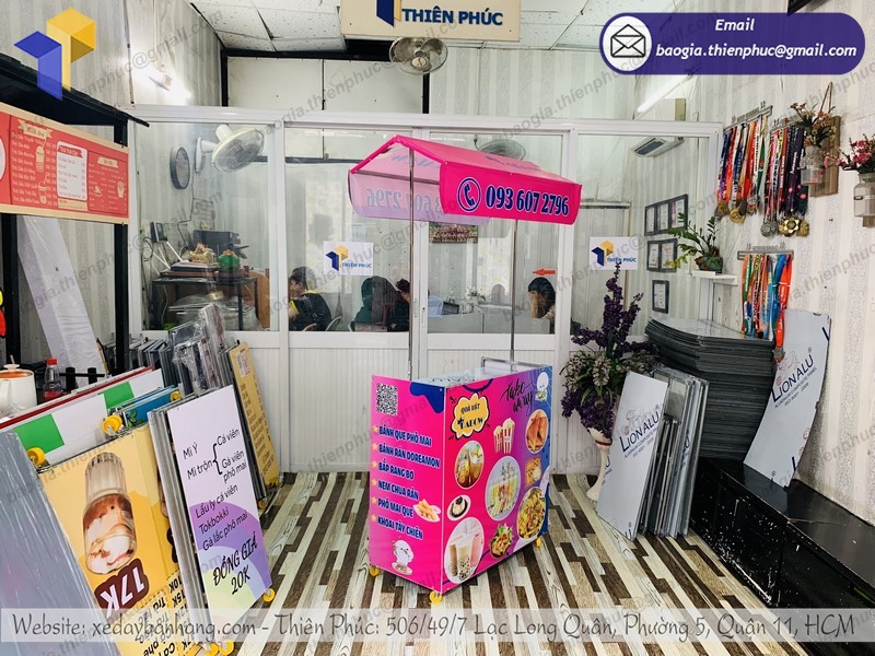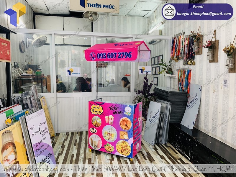 Thiên Phúc là đơn vị gia công xe đẩy bán hàng rong – xe bán sinh tố chất lượng hàng đầu Việt Nam, được người tiêu dùng đánh giá cao và ưu tiên lựa chọn. Chúng tôi cam kết mang đến cho khách hàng những chất lượng cũng như mẫu mã đẹp nhất thị trường, đảm bảo không lỗi mốt và bắt kịp được theo xu hướng thị trường. Thêm vào đó giá bán quầy bán nước vỉa hè của Thiên Phúc có giá khá cạnh tranh nhất.