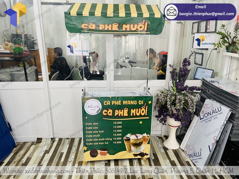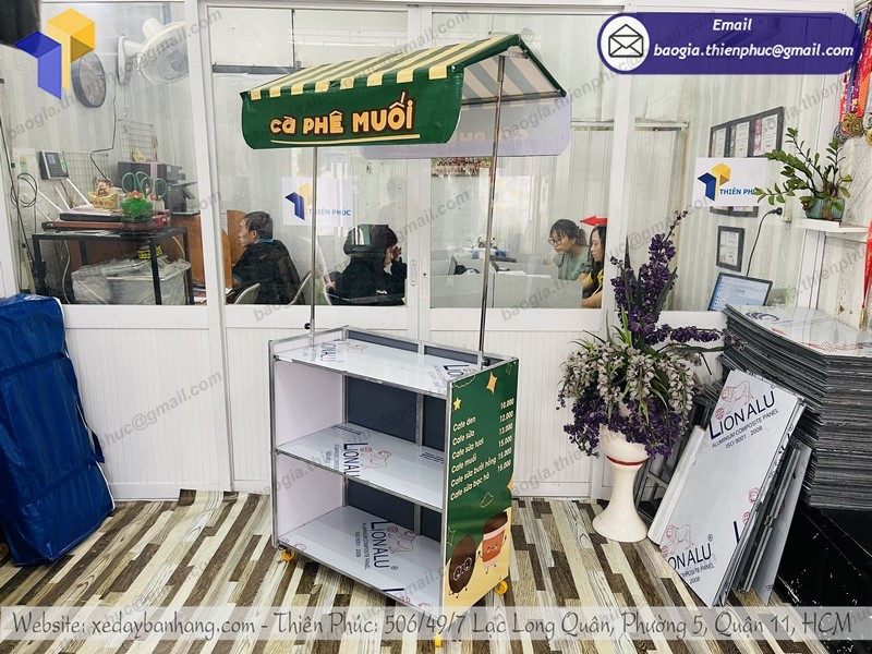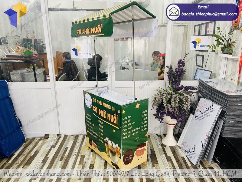 Làm xe đẩy bán cà phê giá rẻ tại xưởng Thiên Phúc