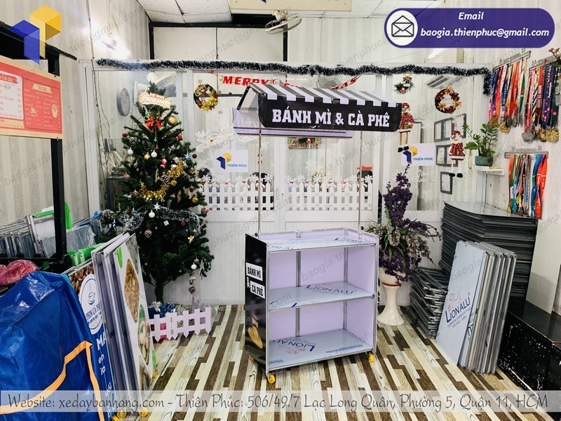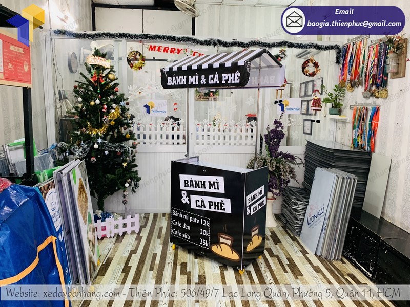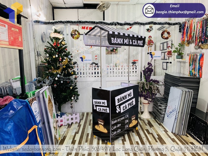 Bên cạnh đó, nhờ việc tự sản xuất và phân phối nên Thiên Phúc cắt giảm được nhiều chi phí cho trung gian. Từ đó mang đến giá bán tốt nhất cho quý khách hàng. Đặc biệt, chúng tôi còn nhận thiết kế và gia công xe đẩy bán cafe giá rẻ nữa.