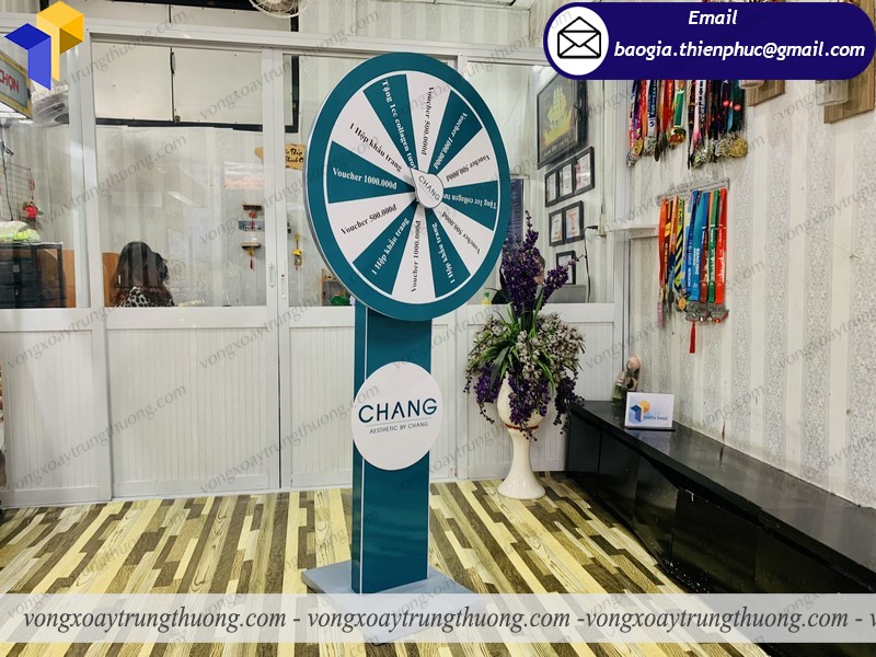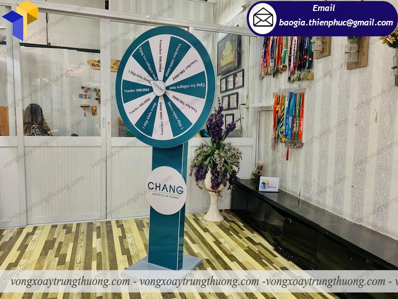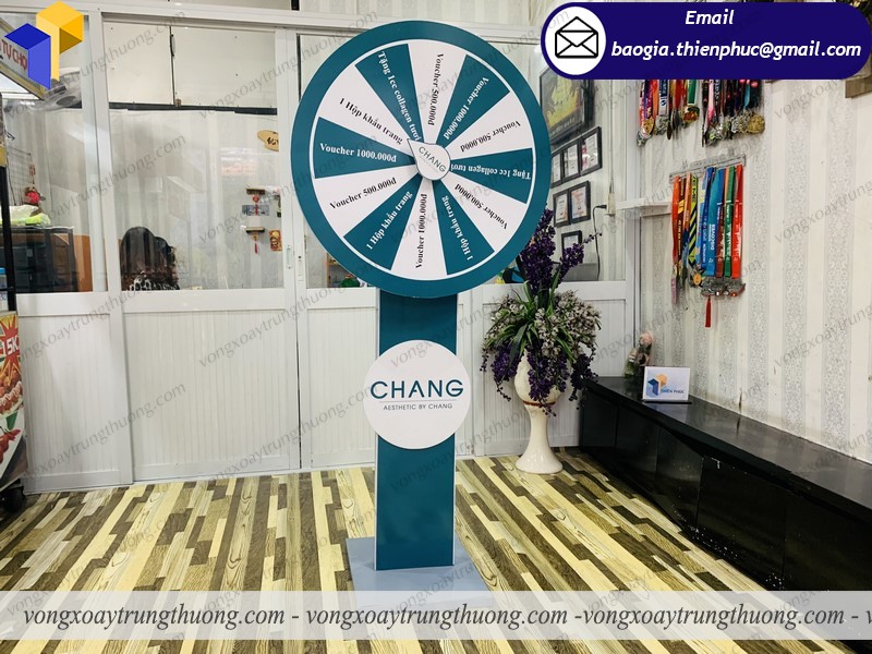 - Thân vòng quay may mắn tự ghi đẹp sử dụng khung sắt chắc chắn.