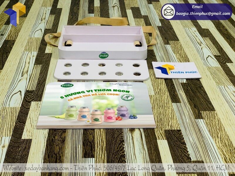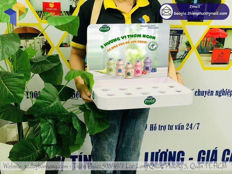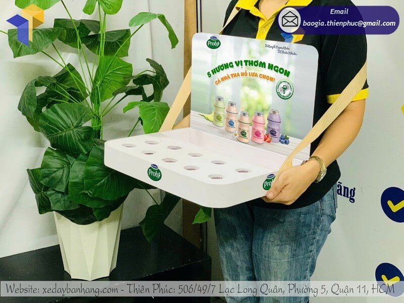Tên sản phẩm: Khay đựng sản phẩm sampling đeo cổ với nhãn hiệu sữa chua PROBY