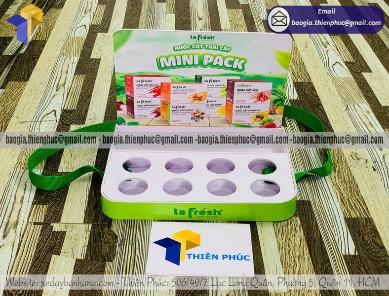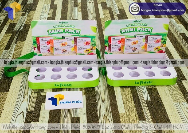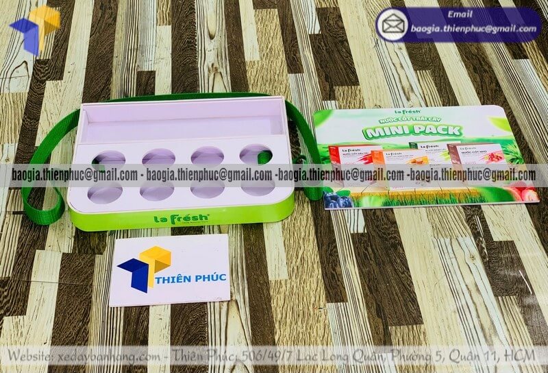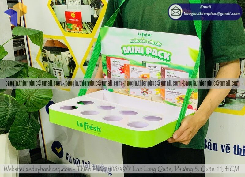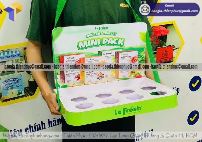 Tên sản phẩm: Khay sampling đeo phát hàng dùng thử marketing cho nhãn hàng thương hiệu LA FRESH