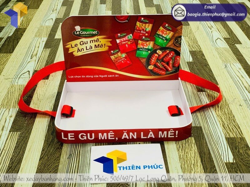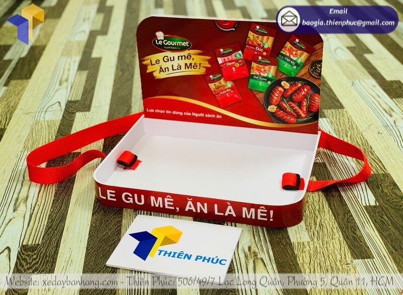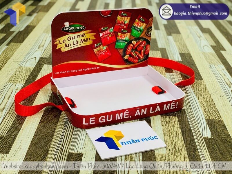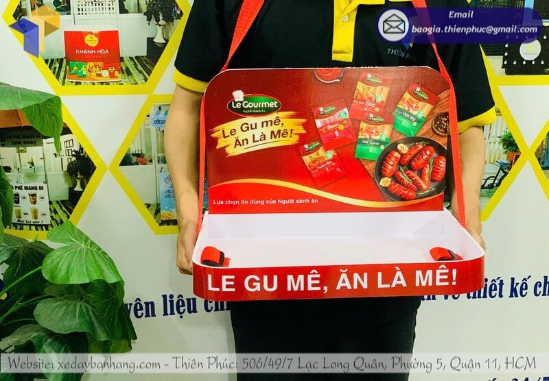 Tên sản phẩm: Khay sampling đeo vai phát sample cho PG với logo nhãn hàng Le Gourmet