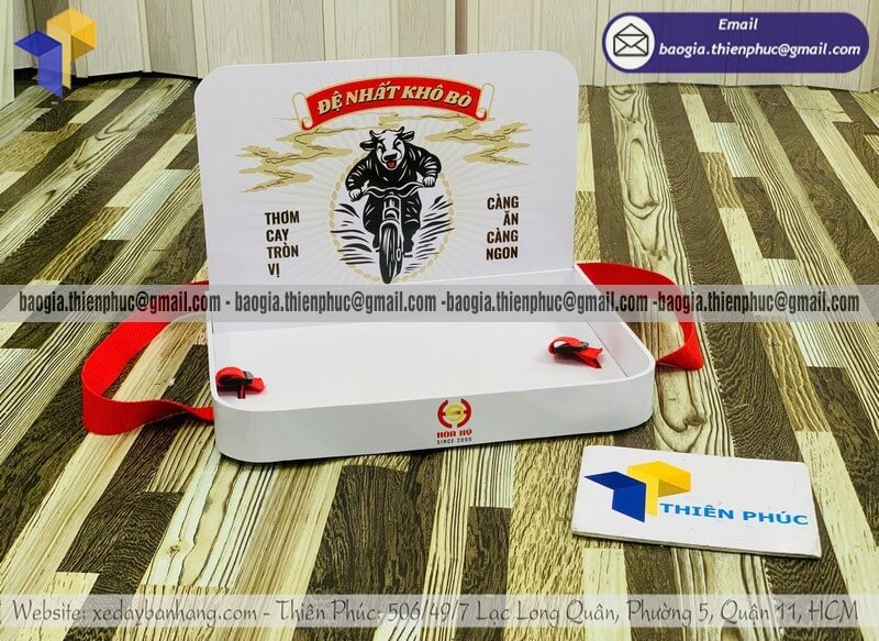 Tên sản phẩm: Khay tiếp thị có dây đeo phát thử sản phẩm mới với logo nhãn hiệu ĐỆ NHẤT KHÔ BÒ