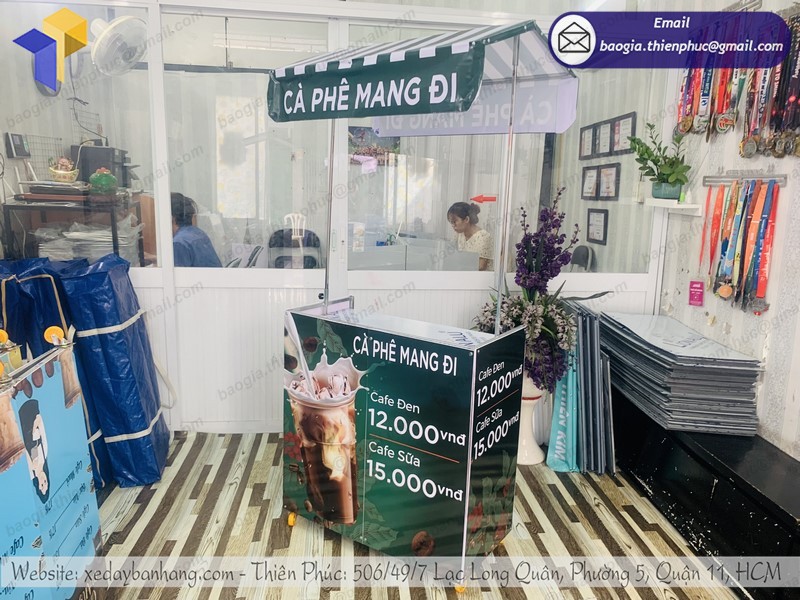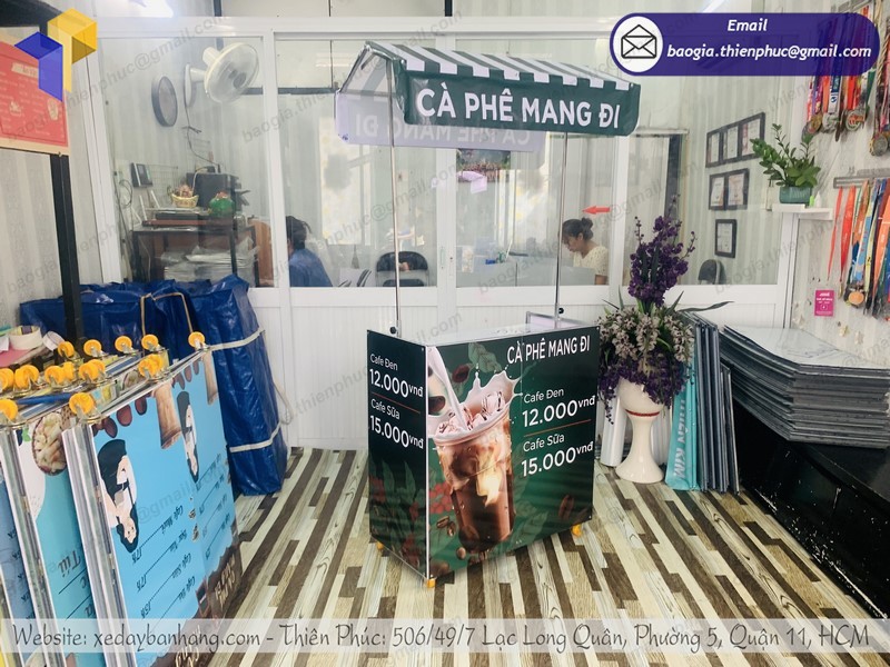 xe lắp ráp bán cà phê lưu động tại Thiên Phúc chúng tôi thường có thiết kế rất đẹp mắt, được in ấn sản phẩm, tên của các thương hiệu trực tiếp lên quầy giúp cho quý khách hàng dễ dàng nhận diện được thương hiệu từ xa. Được sản xuất bằng chất liệu nhựa dẻo đạt 100% không pha có thể tháo lắp dễ dàng và trưng bày tại các siêu thị hoặc các gian hàng hội chợ triển lãm hay bán hàng vỉa hè, bắt mắt mà tiết kiệm khá nhiều chi phí