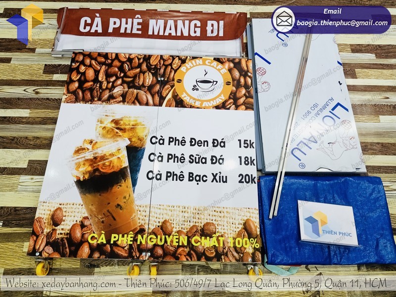 + Toàn bộ xe cà phê mang đi gấp gọn đều tự sản xuất và phân phối
