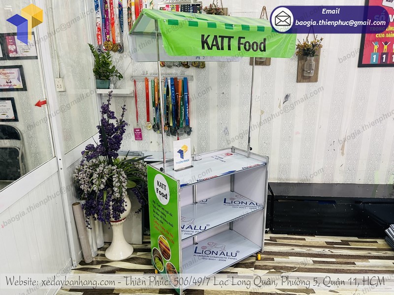 Gây ấn tượng và thu hút khách hàng một cách chủ động mà còn đem lại cảm giác chuyên nghiệp, uy tín. Sản phẩm quầy kệ bán đồ ăn giúp nhà bán hàng tiết kiệm chi phí. Chỉ với trên dưới 1 triệu đồng chúng ta đã có thể sở hữu một địa điểm bán hàng lưu động, một vị trí bán hàng chuyên nghiệp.