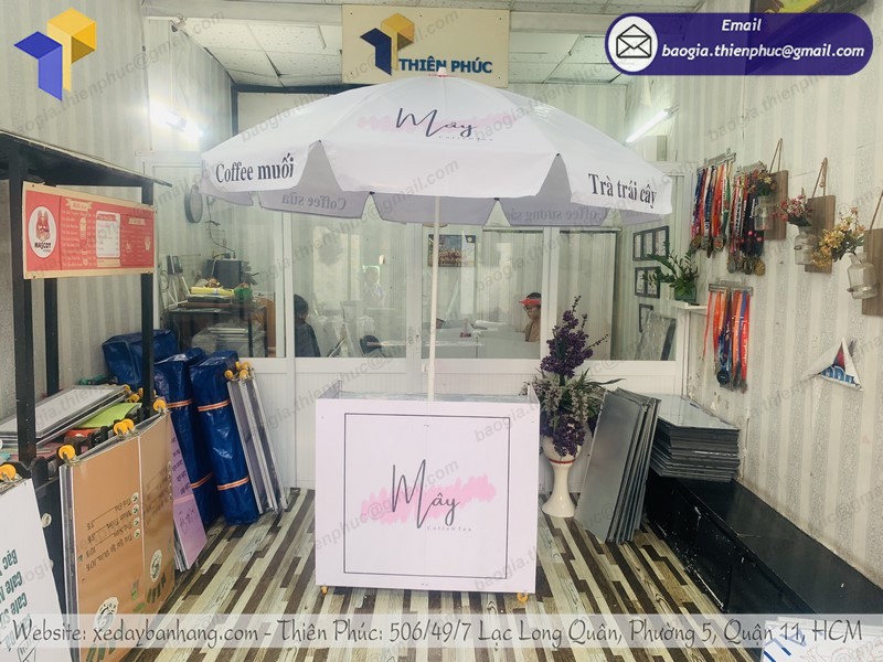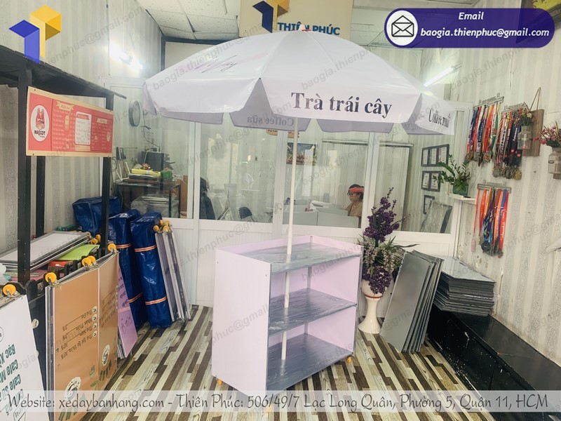 Thiên Phúc được biết đến là 1 công ty cung cấp xe đẩy bán hàng hàng đầu tại Việt Nam. Bên cạnh những sản phẩm quầy bán sinh tố nước ép, thì Thiên Phúc còn sản xuất và phân phối các mẫu xe bán hàng rong khác. Có thể kể đến như xe bánh tráng trộn, xe bán đồ ăn vặt, xe bán gà rán,…Và tất nhiên sẽ không thể thiếu xe bán trà trái cây, sản phẩm mà bạn đang kiếm tìm rồi!