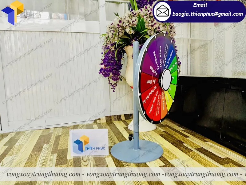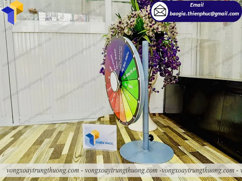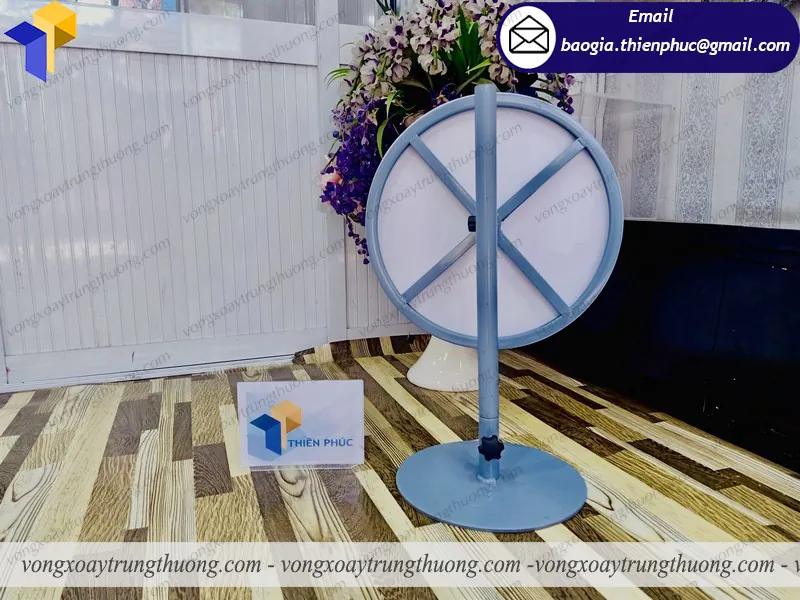 Công ty Thiên Phúc là một đơn vị chuyên sản xuất cung cấp các vật phẩm quảng cáo theo yêu cầu khách hàng. Đặc biệt chúng tôi còn cung cấp dịch vụ phân phối bán lẻ vòng quay để bàn giá rẻ, standee mô hình, standee chân sắt,… Với đội ngũ công nhân viên chuyên nghiệp, trách nhiệm, Thiên Phúc chúng tôi cam kết sẽ mang đến bạn những sản phẩm chất lượng và dịch vụ tốt nhất. Hãy liên hệ với Thiên Phúc khi bạn có nhu cầu sử dụng vòng quay trúng thưởng để quảng bá thương hiệu của mình.