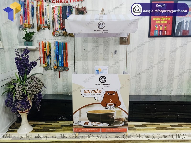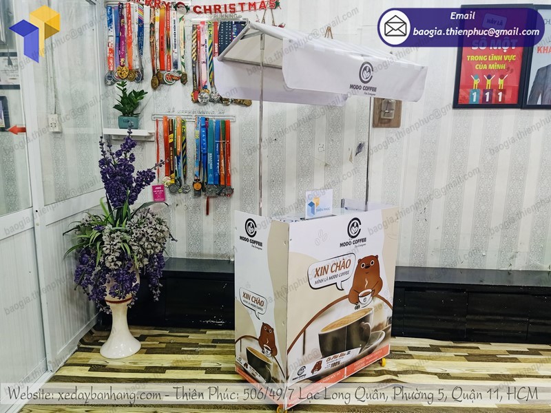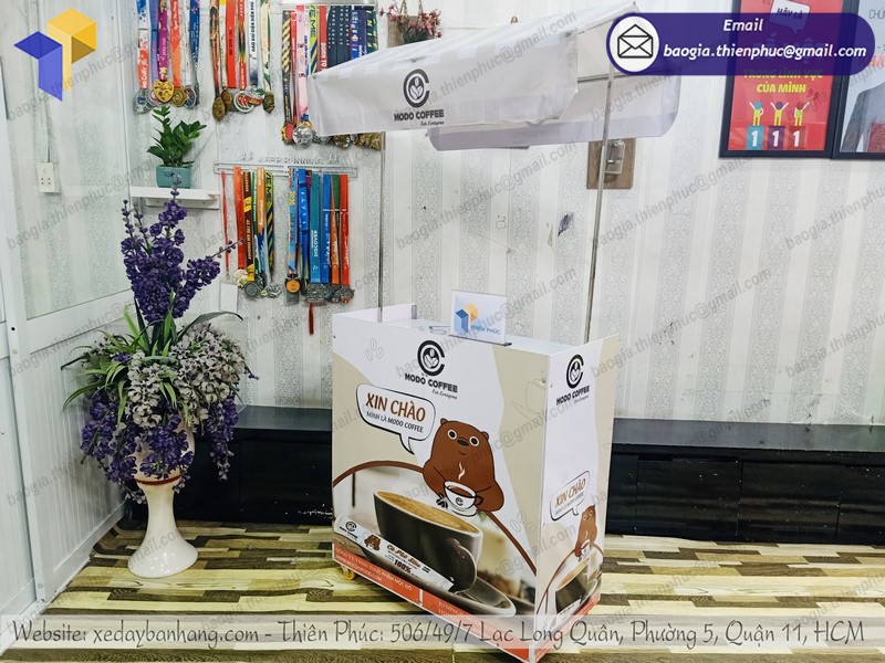 Thiên Phúc là nơi cung cấp các giải pháp thiết kế và thi công quảng cáo. Đồng thời, cũng là thương hiệu xe đẩy bán hàng được nhiều người tin dùng và sử dụng. Ngoài ra, con nhận gia công theo nhu cầu và mong muốn của khách hàng. Chúng tôi luôn đặt tiêu chí “sự hài lòng của quý khách là niềm tự hào của chúng tôi”. Tại Thiên Phúc có vô vàn mẫu mã đa dạng, giá cả phù hợp; chất lượng và uy tín trải dài khắp 64 tỉnh thành với hệ thống vận chuyển xuyên suốt 3 miền với thời gian nhanh nhất.