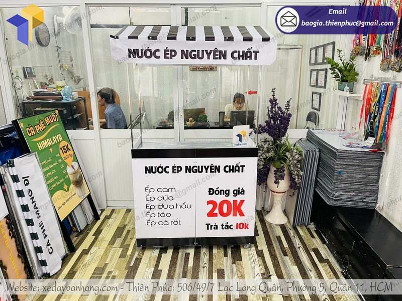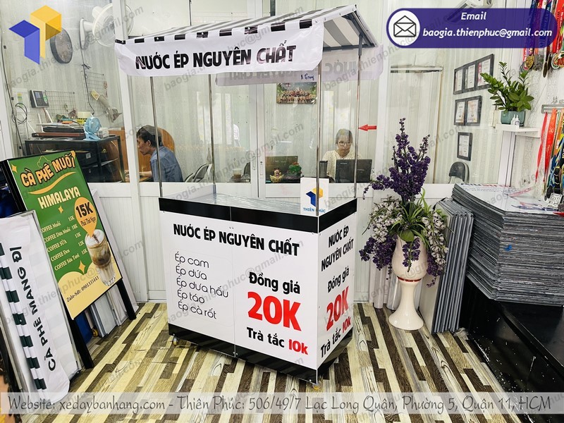 xe lắp ráp bán nước ép trái cây là 1 trong những sản phẩm nổi trội đặc biệt trong giai đoạn dịch bệnh hiện nay. Nhu cầu sử dụng các loại thức uống tự nhiên để cung cấp vitamin C và sự đề kháng cho cơ thể. Hơn nữa, được thiết kế để bán mang đi nên quầy cũng đảm bảo được việc hạn chế tiếp xúc. Điểm ấn tượng là bạn có thể di chuyển vị trí đặt quầy sao cho thật gần các khu vực tiếp xúc.