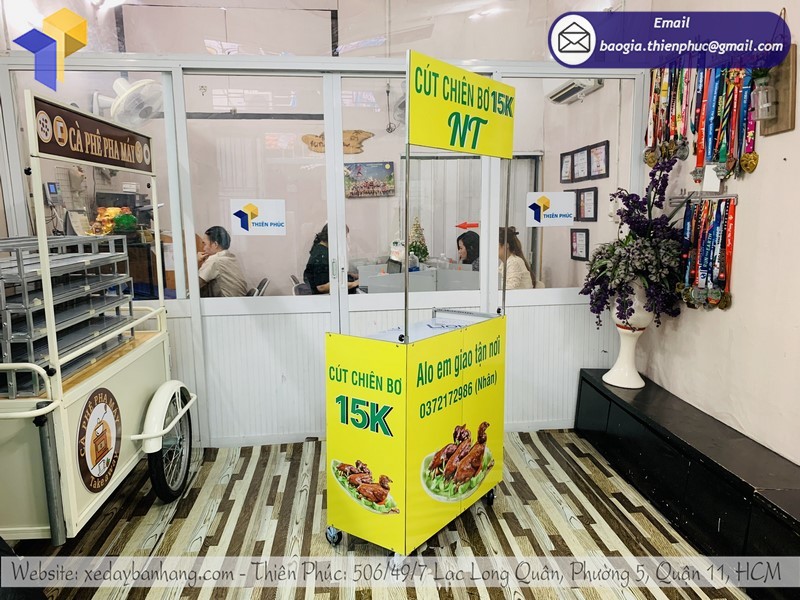 Thiên Phúc là đơn vị gia công xe đẩy bán hàng rong – xe bán sinh tố chất lượng hàng đầu Việt Nam, được người tiêu dùng đánh giá cao và ưu tiên lựa chọn. Chúng tôi cam kết mang đến cho khách hàng những chất lượng cũng như mẫu mã đẹp nhất thị trường, đảm bảo không lỗi mốt và bắt kịp được theo xu hướng thị trường. Thêm vào đó giá bán quầy bán nước vỉa hè của Thiên Phúc có giá khá cạnh tranh nhất.